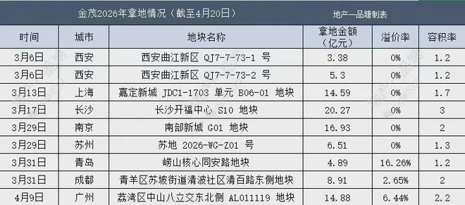 2026年前四月,金茂在土地市场上火力全开。尤其是在三,四月份,金茂的投资版图超级集中化,并且对于产品研判也早已经提前布局。